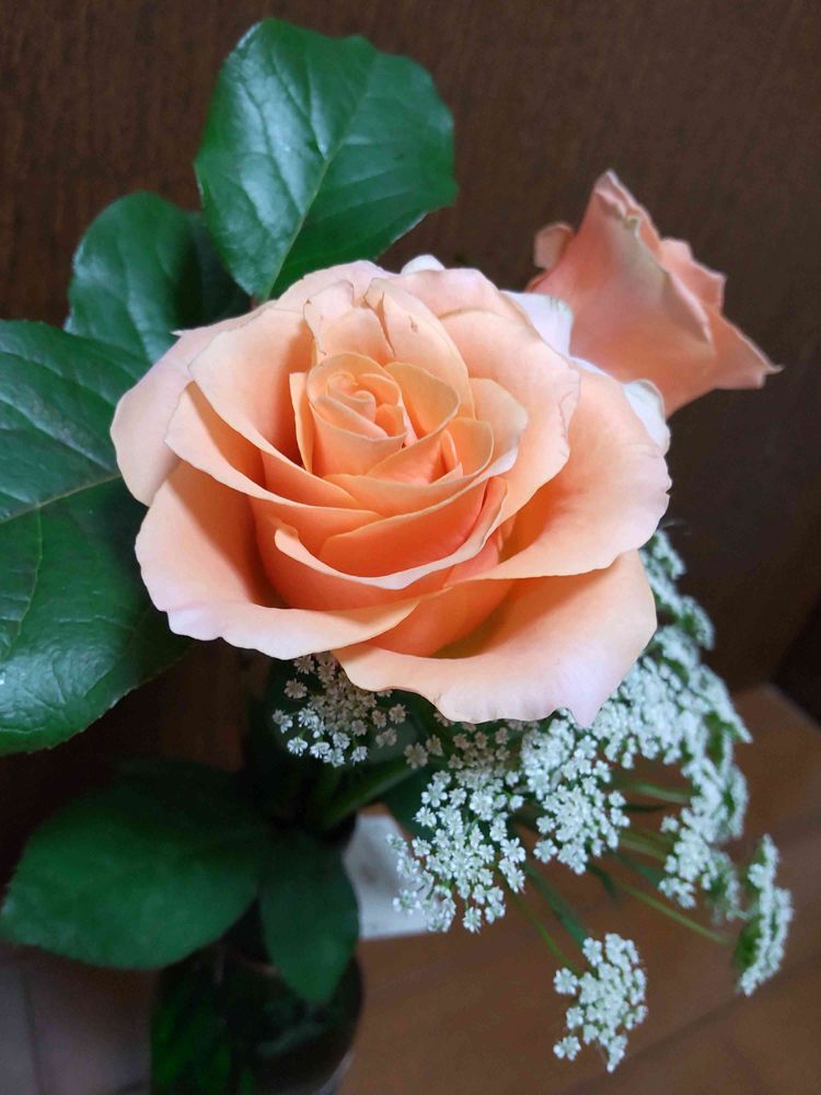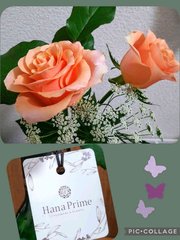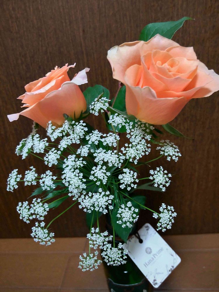 昨日、届いたのが写真の薔薇2本とレースフラワにリーフ🌹🌹🤍❄🌿