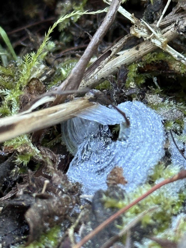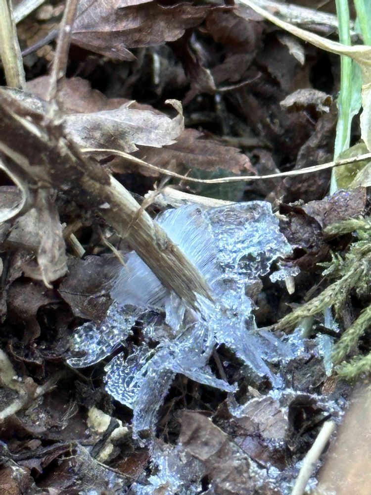 高尾山ではシモバシラですが、御岳山では同じシソ科のカメバヒキオコシ(亀葉引起し) の氷の花です🧊