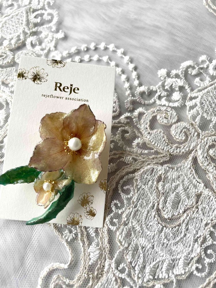 咲いているときは下向きでちゃんとお顔を見せてもらえないのでレジンアクセサリーの魔法をかけてこんなに艶々で、ステキなブローチになりましたよ。洋服はもちろんバック帽子等につけてもいいですよね。