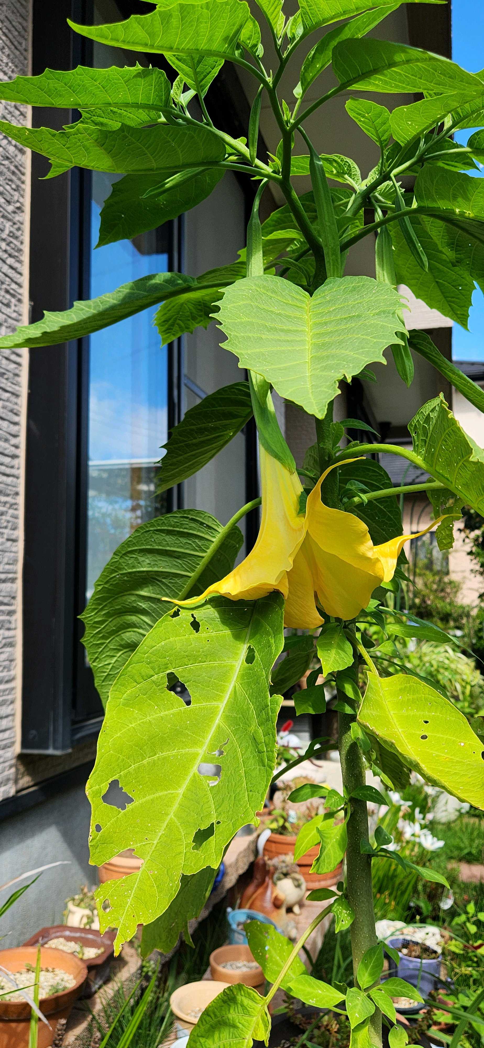 黄色のエンゼルストランペット 2回目の挑戦で、開花までこぎつきました。