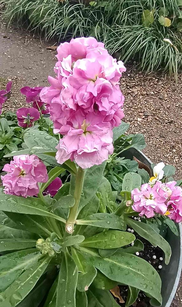 淡いピンクのストックは一番花が