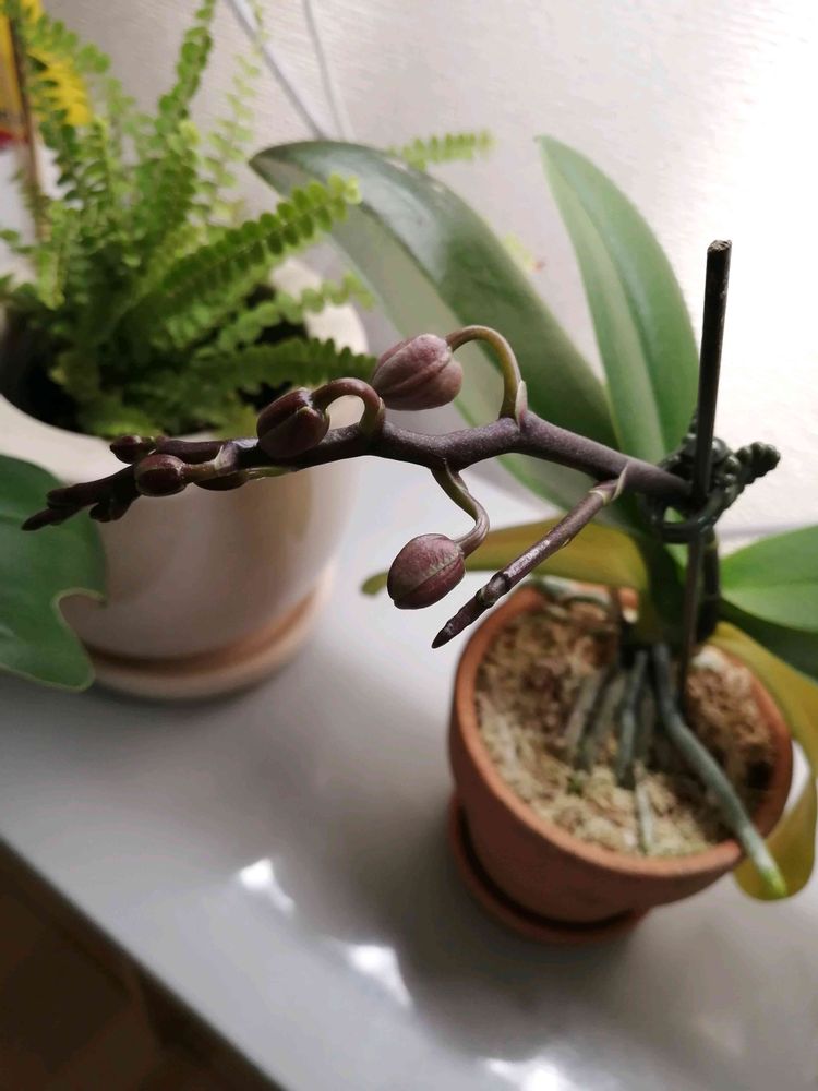 ミニ胡蝶蘭のつぼみがだいぶ大きくなってきました👏🏻( ᐖ )