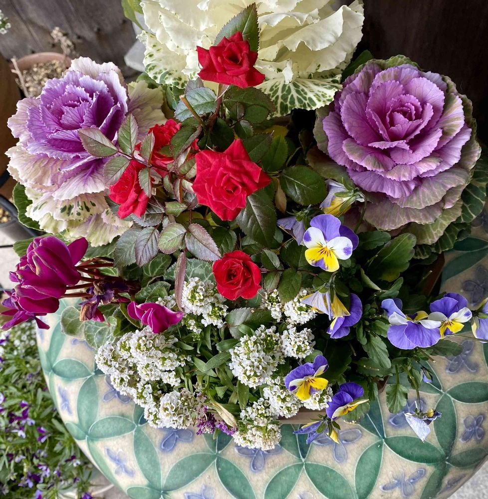 可憐さんの庭,南天,葉牡丹の鉢植えの投稿画像