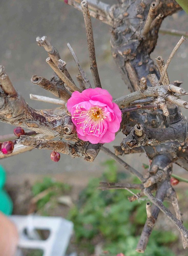 40年も前に亡くなった祖父ゆかりの盆栽の紅梅。今年もまず一輪花開きました。いい色ですぅー🙌 「梅一輪 一輪ほどの 暖かさ」(嵐雪)となるのでしょうか🤔 とりあえず今日は朝から強い雨☔ですけどね🤭