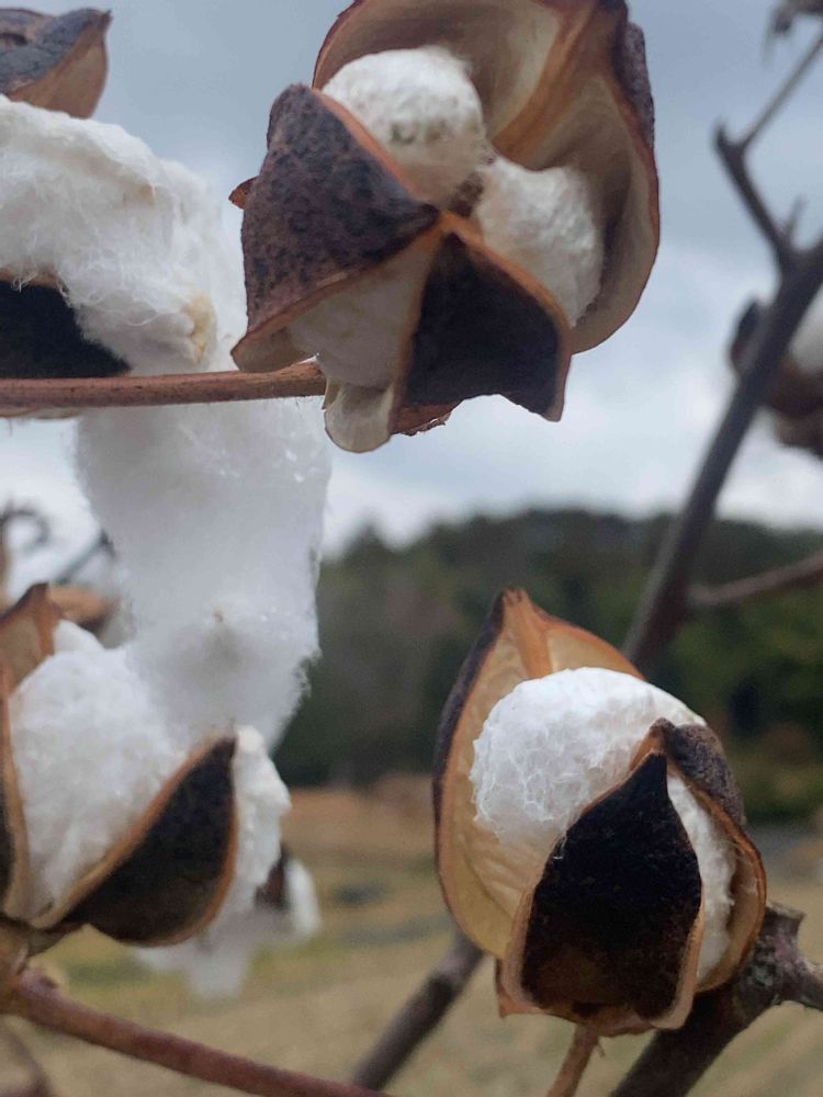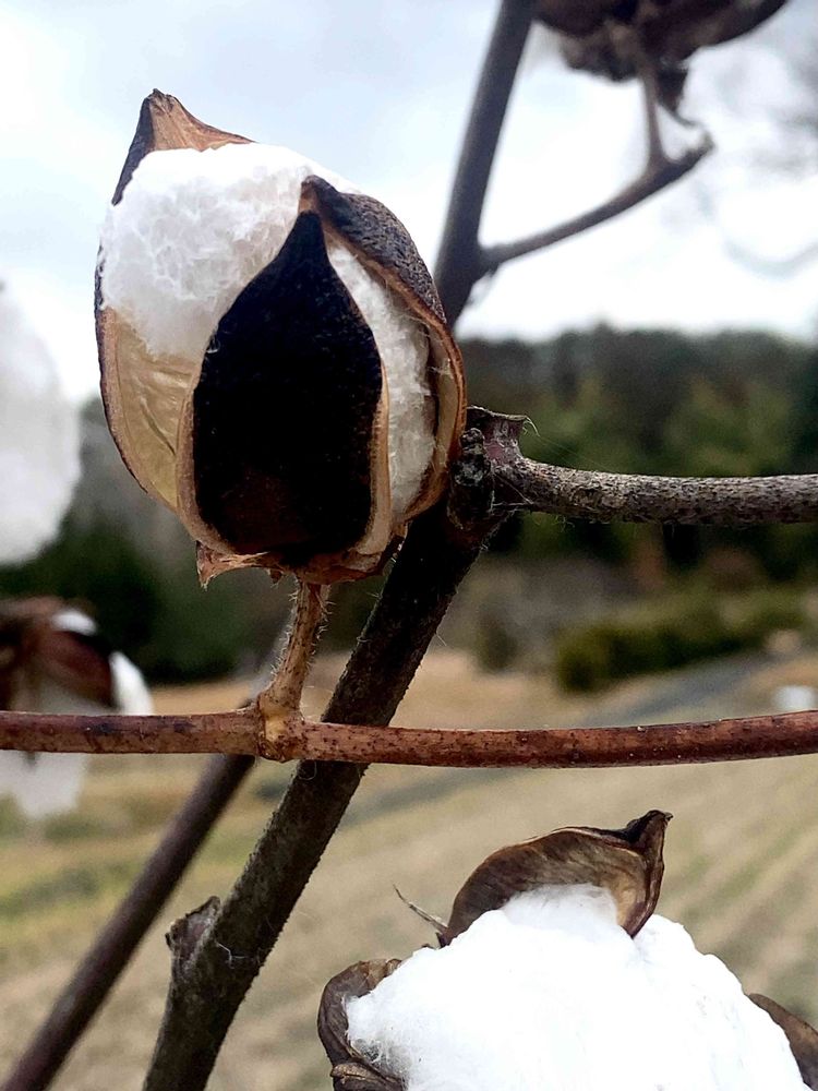 秋に熟した果実がはじけ、中から白い綿毛が現れます。これが花のように見えるということから綿花と呼ばれるようになったそうです。』