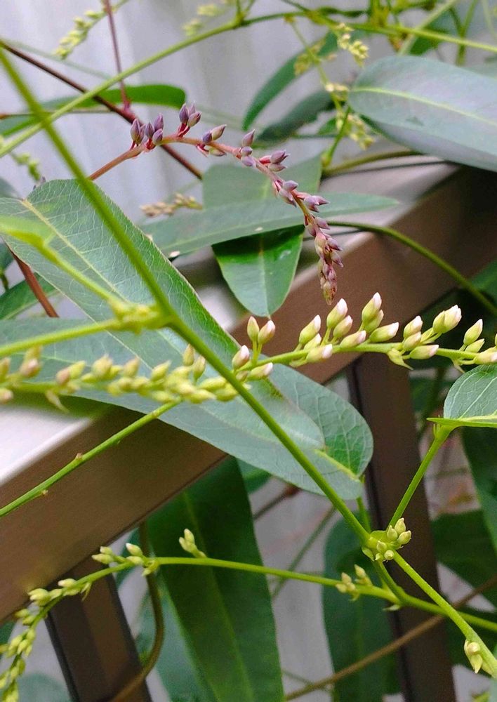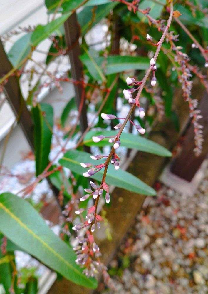 庭の掃除をしていてハ-デンベルギアの花のつぼみがふくらみ始めているのに気づきました。