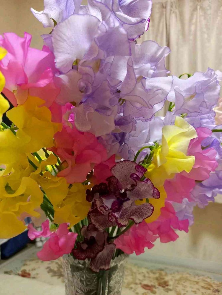 お嫁さんのお母さんの友達がスイートピー農家さんみたいで沢山頂くそうです…それを我が家にも送って下さるんですよ😉