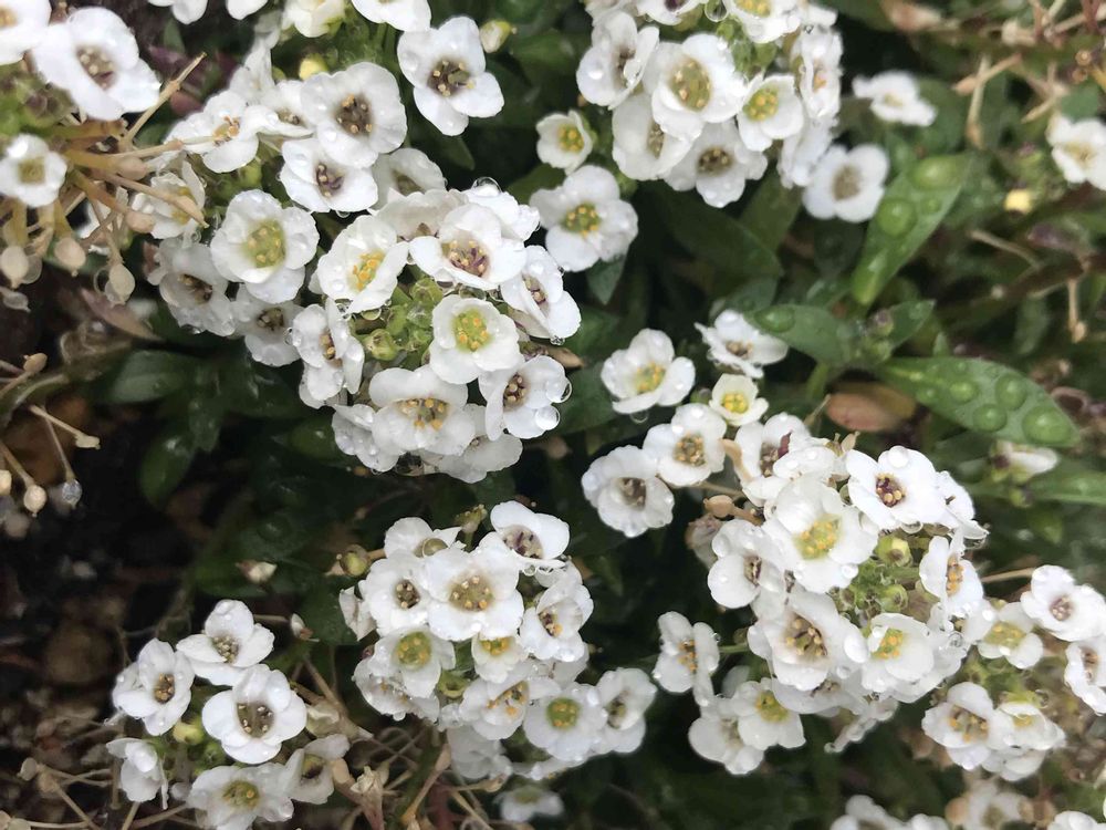 アリッサムは匍匐性のためか風に負けず元気に増え続けています。