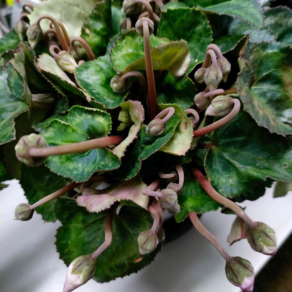 室内のシクラメンさん、めちゃめちゃ蕾がたくさんで気持ち悪いほどです😫。どうしましょう…🤔❓