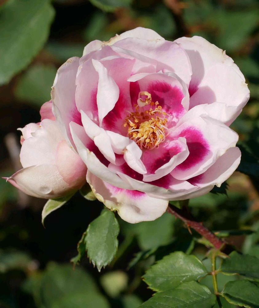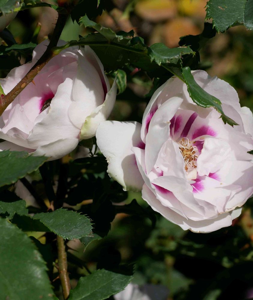 白の花弁の中心に赤紫のブロッチが可愛いバラ「アイズ・フォー・ユー」、イングリッシュガーデンで咲いていました🌹