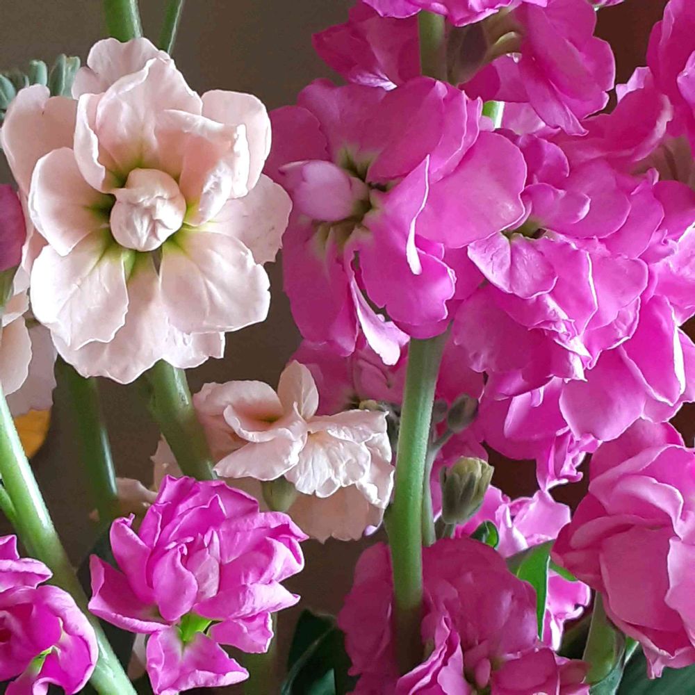可愛い色のストック、花瓶にさしたらお部屋中にイイ香り( ⁎ᵕᴗᵕ⁎ ).。.:*♡