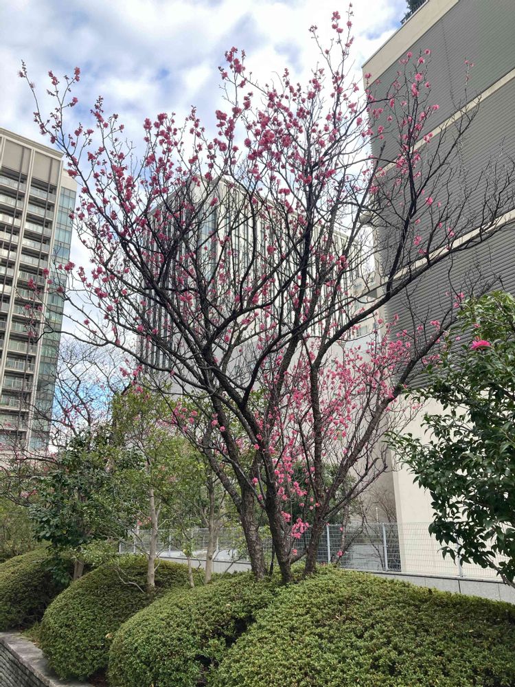 都市センターホテルの梅林で「コウバイ」が咲き始めた。