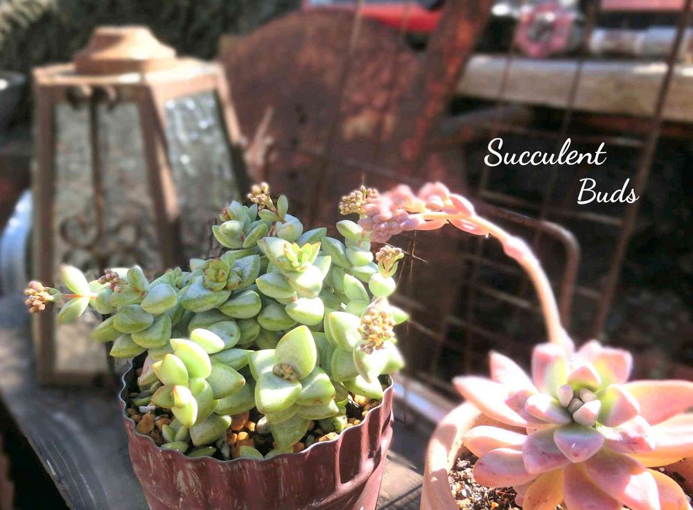 多肉さんのお花可愛いから、咲くの楽しみだね🎶💕 ジャンクガーデンに置いてるんだね😄