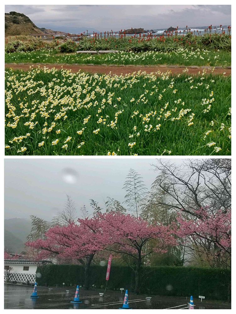 土肥公園も満開と言えるほど花盛りでしたが、残念ながら雨だってので、車窓から