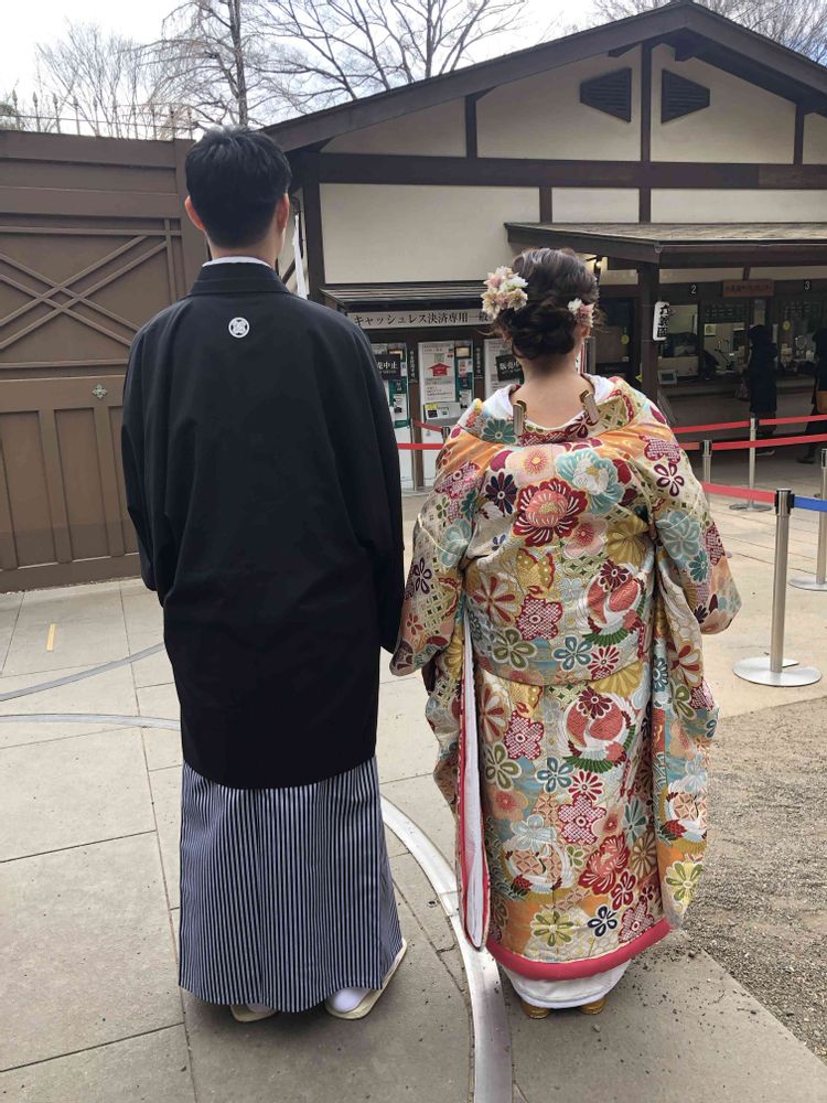 花嫁衣装でこれから撮影のようです。後ろ姿を撮らせていただきました。おめでとうございます😄