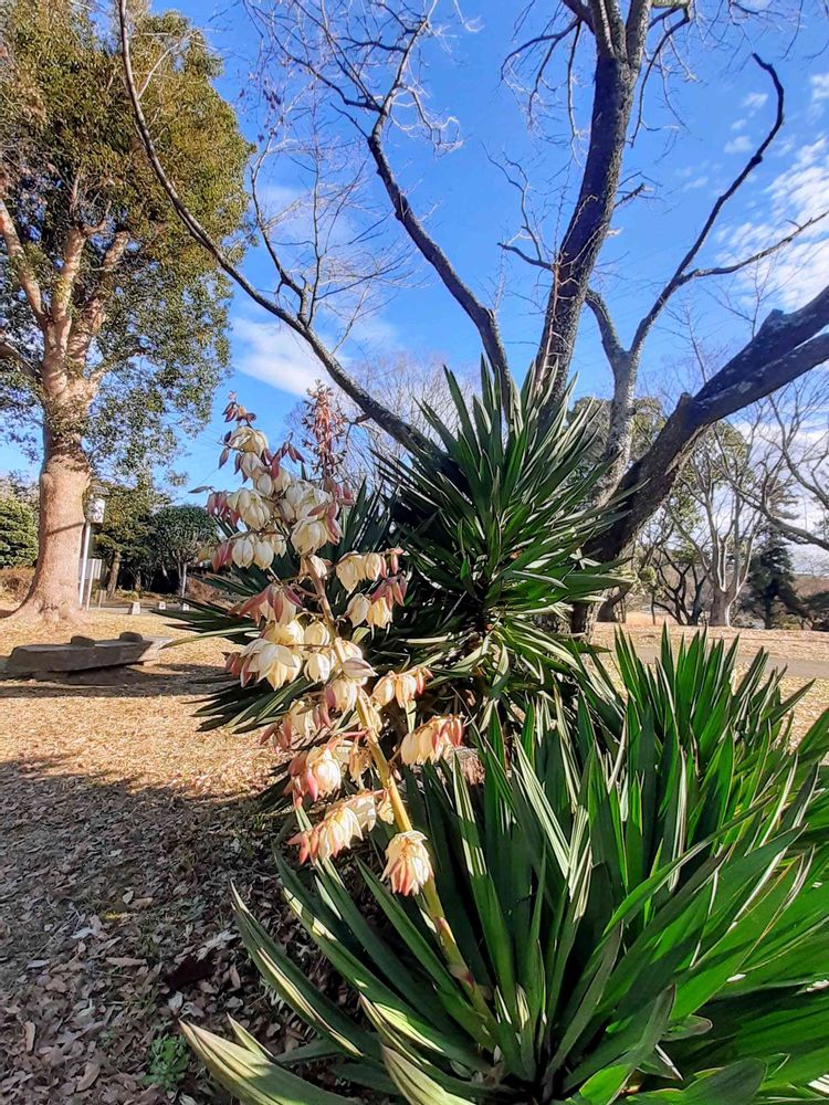 冬の公園で咲いていたユッカ