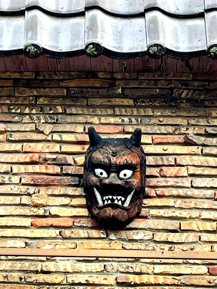 カフェの壁に鬼