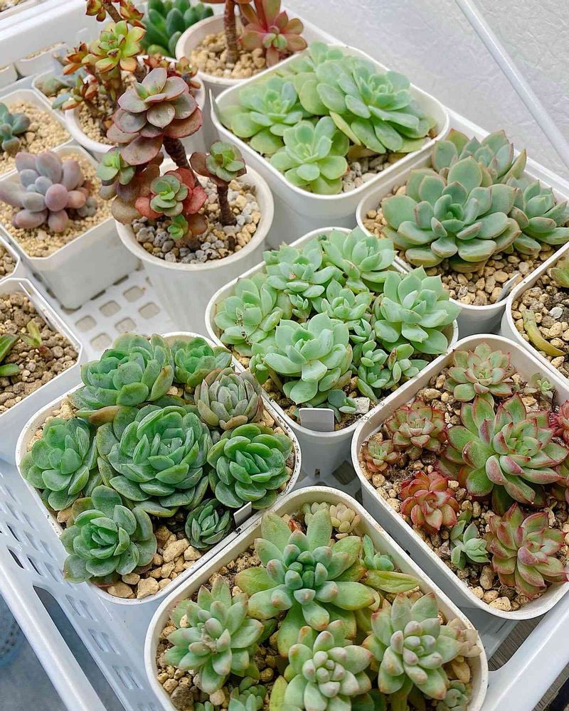 多肉はカラフルだから鉢の色を揃えるとスッキリ見えますね♩