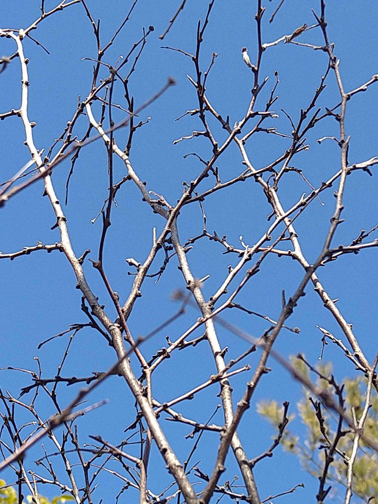 冬日に光る!大河ドラマ「光る君へ」始まりましたね。こんな細い枯れ枝?に何の関係があるの?と言わないでくださいね。これが無ければ、源氏物語、枕草子も古今和歌集や万葉集もできなかったかも?痩せた乾いた山の尾根筋にたくましく育つ灌木です。2024.1.23 各務原権現山
