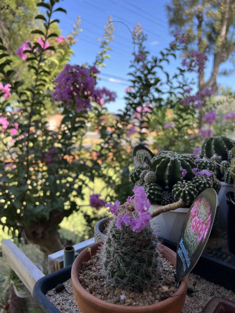 サボテン🌵の後ろ🌲に咲いてる花🌸がサボテン🌵の上に落ちただけでした😅
