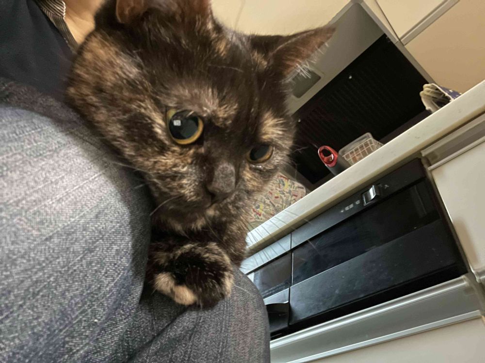 お膝の上でお澄まし顔もめっちゃ可愛い〜😆