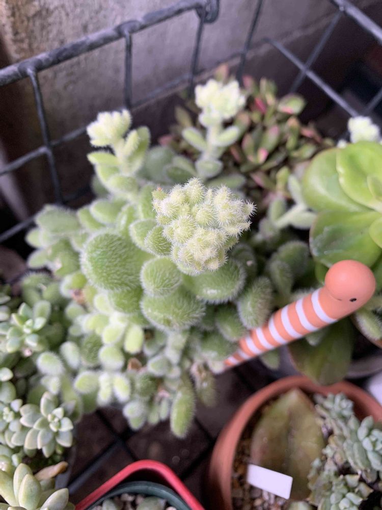 5️⃣初めてお花が咲きそうなモケモケの多肉さん💚白いお花かな??