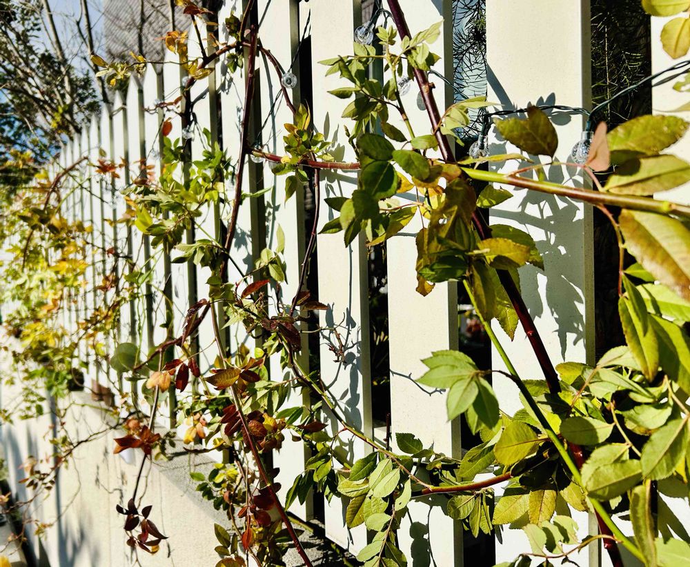 今日しかない!!と、うちの大暴れの子、香りモッコウバラを誘引しました。