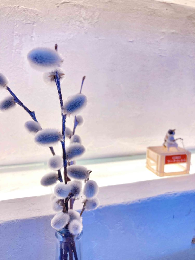 カフェに飾ってあったネコヤナギ🐈⬛✨今の季節に見ると…雪をまとっているようにも見える❄️👀触りたくなっちゃうフワフワ感💭2枚目は雪掻きに疲れた(飽きた⁉️🤭笑)娘が作った雪だるま⛄️♡左側…ちょっと寝ぐせついてる❓🤣笑