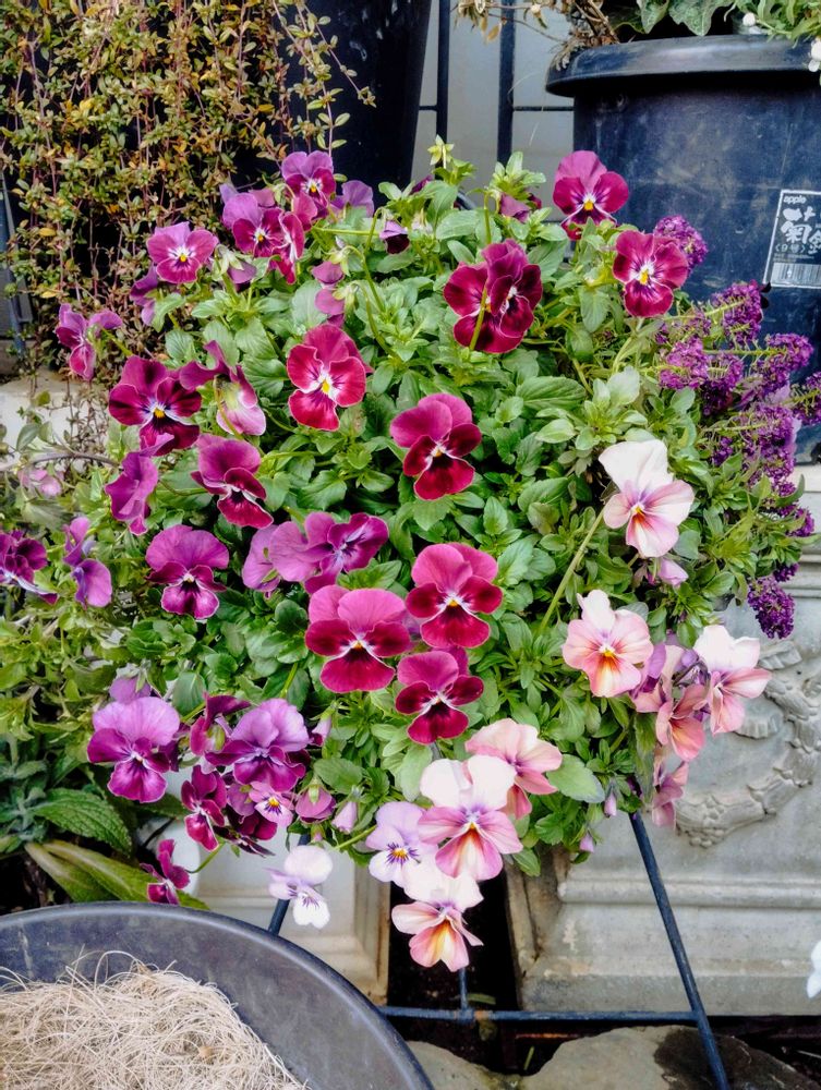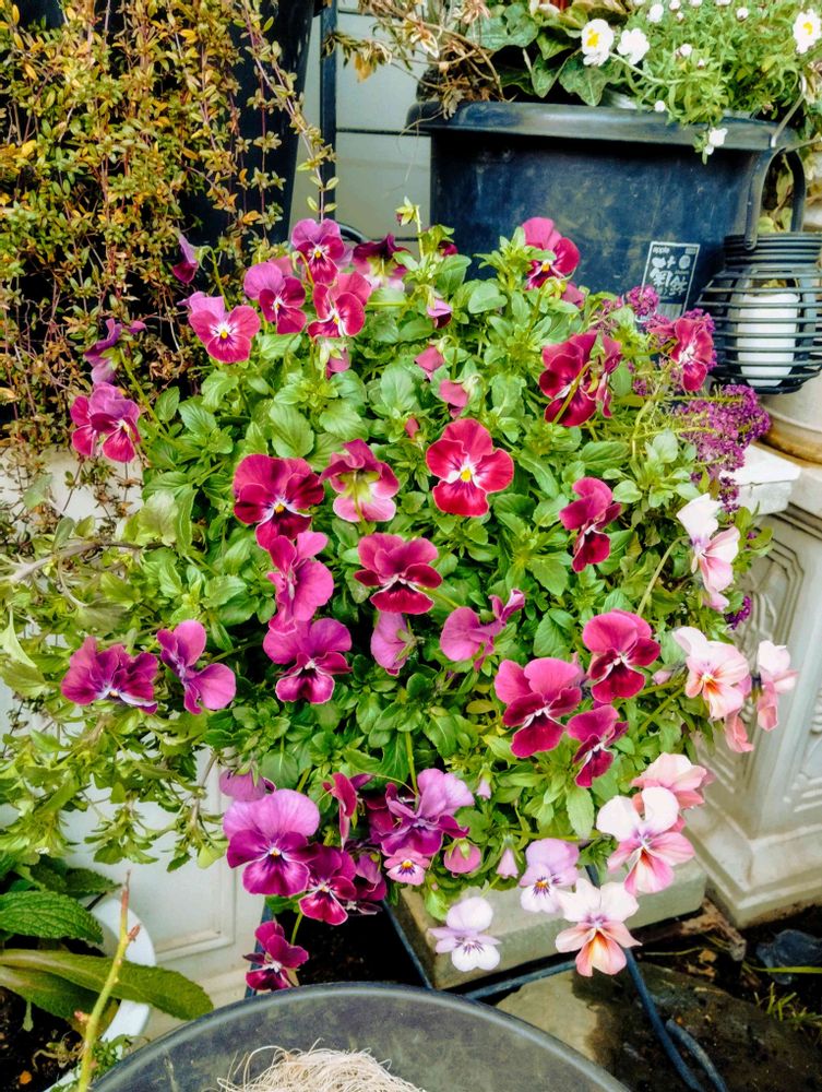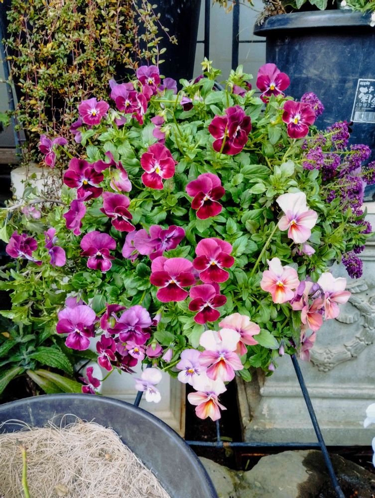 余った薄ピンクと紫色のアリッサムと赤紫系ビオラで作りました🌿