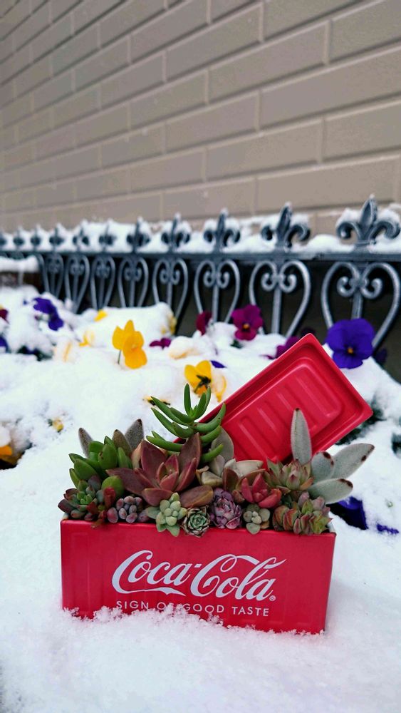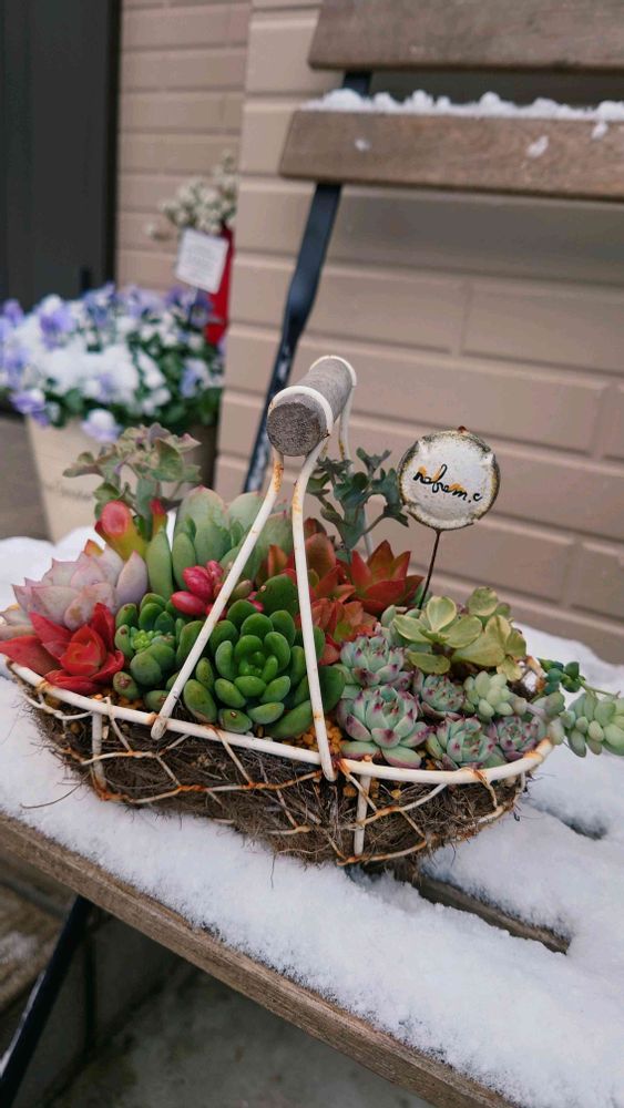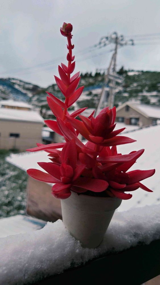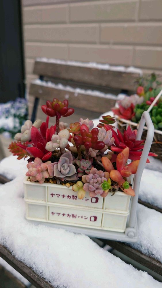 雪景色に多肉植物❣️❤️🔴🔺が映えますね〜可愛い👀🥰🎶