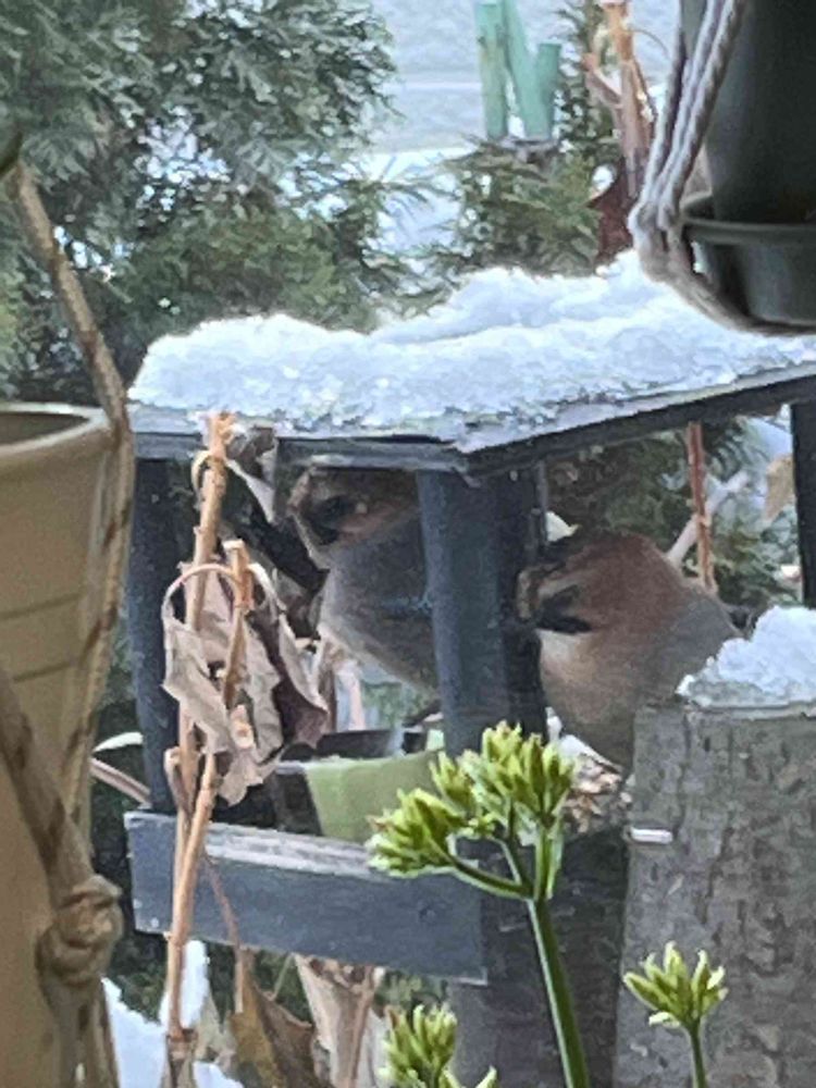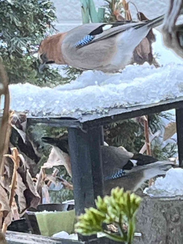 先日見ていただいた奥さん連れて食事に来たミヤマカケスさんが昨日又来てくれたので今度はバッチリ夫婦で撮れました。ここには写っていませんが子供も連れてました。嬉しい〜‼️