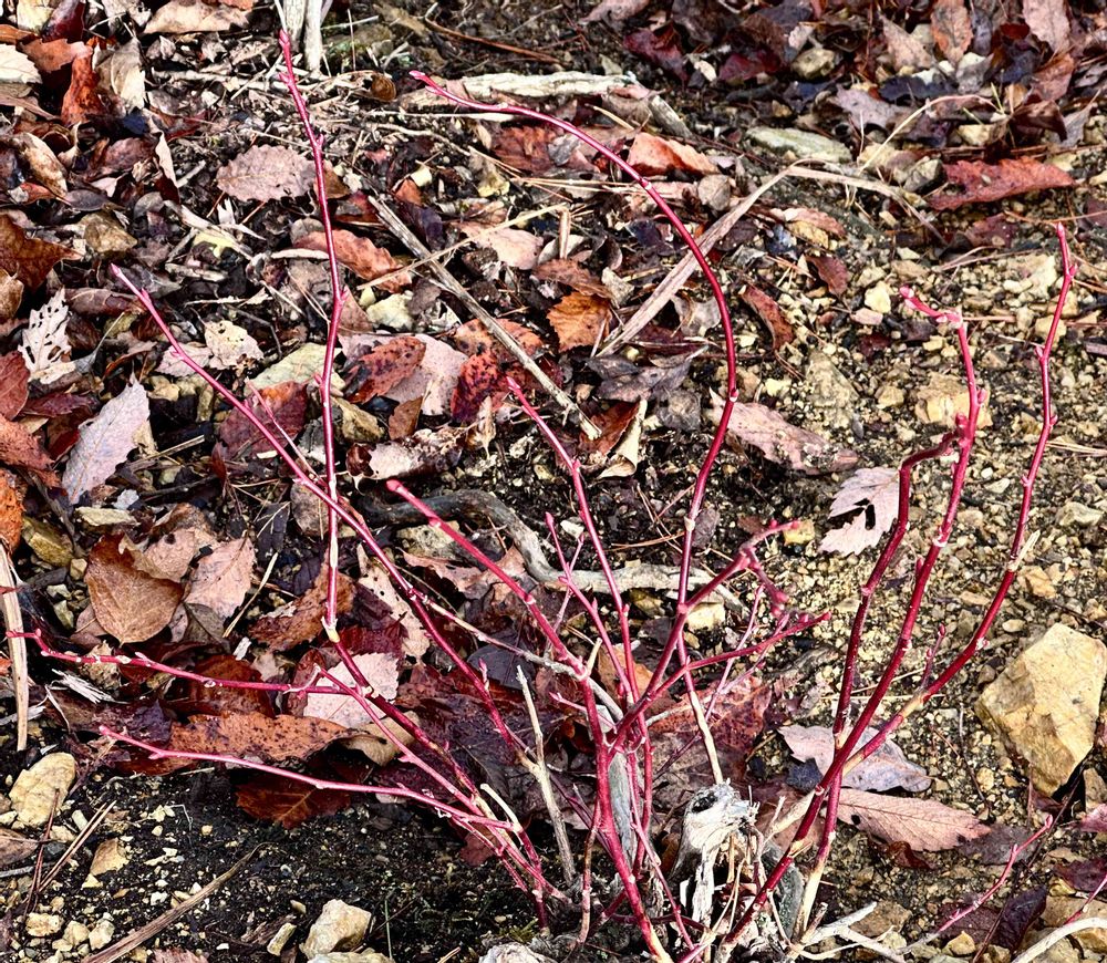 まだ小さい株ですけど、白く見える前年枝も見えますね。赤いのは、ひこばえみたいに新たに出てきた枝だと思います😊