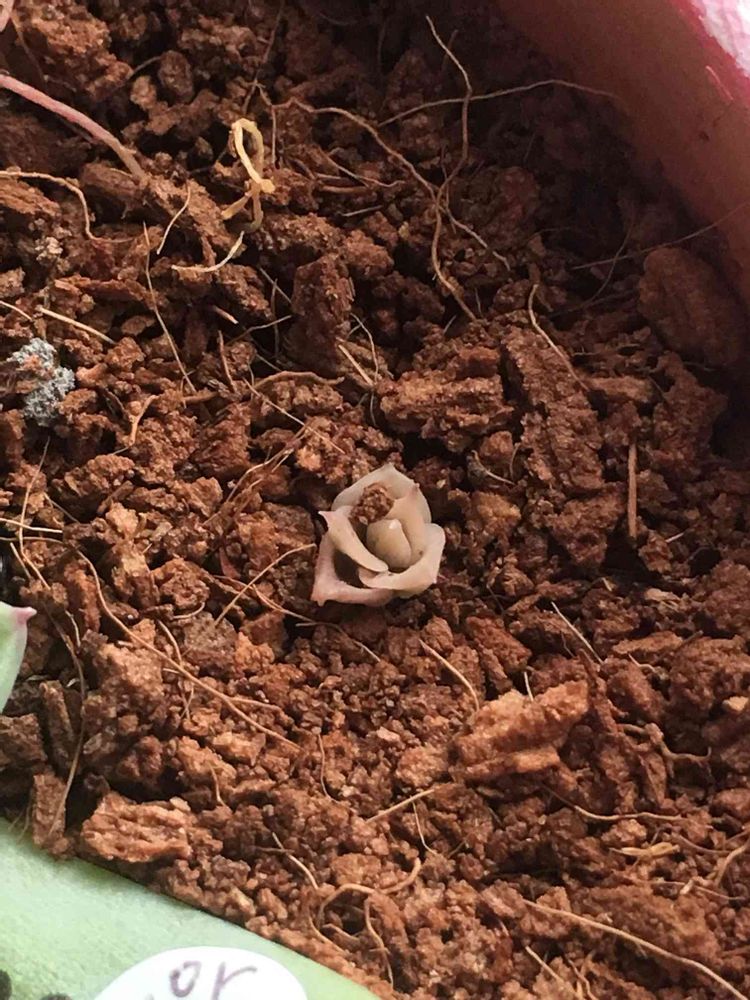 ファイヤーピラーの赤ちゃん。この暑さで変色してしまった〜💦根っこは大丈夫そうだけどこの色じゃ……