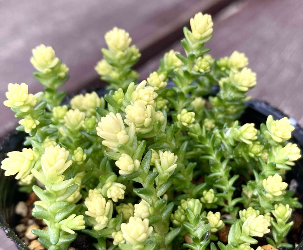 一方、黄金細葉万年草などは最初から葉緑素が薄く、ずっとそれが継続しているわけです。