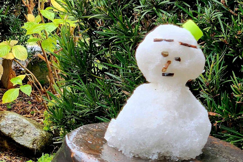 葉には雪ご積もっていましたが、他は溶けていたので四枚目にオマケの雪だるま⛄