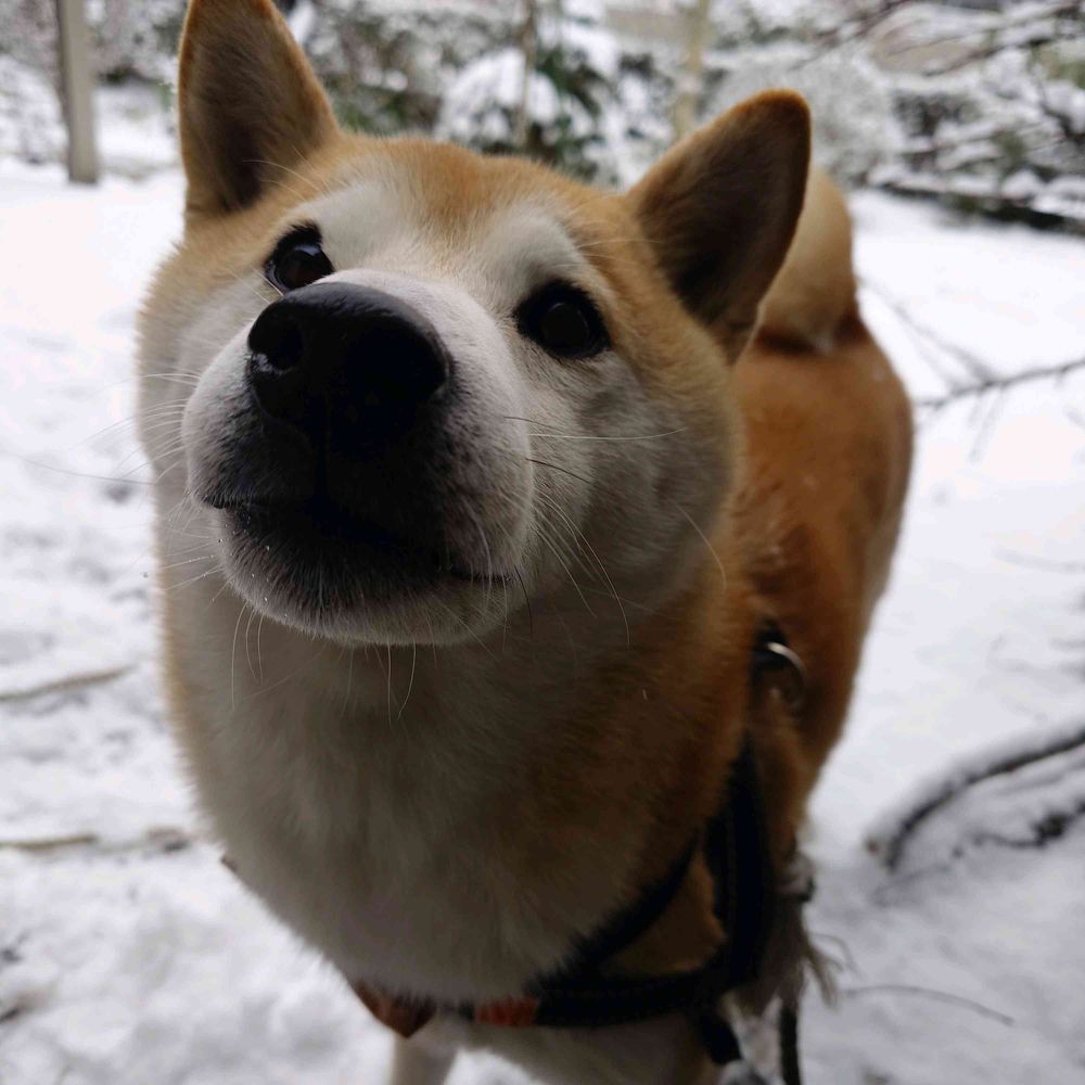 雪を喜んでいるように見えますが…寒がりなんですネ❗