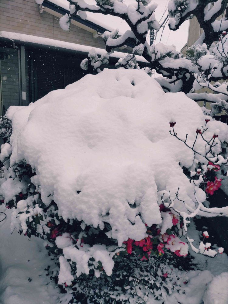 ❷庭のサザンカ…重ぃ💦花傷んじゃっただろうなぁ