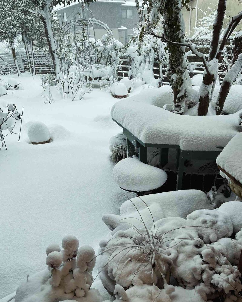 おかーしゃさんの今庭,雪の庭,軒下避難中の投稿画像