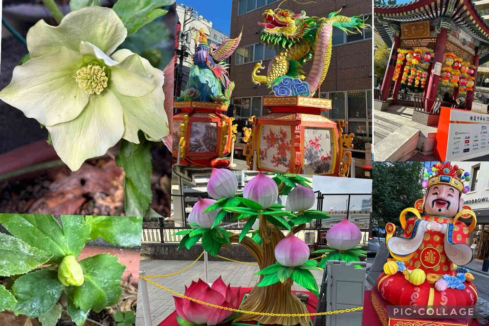 家のクリスマスローズは今年咲くのが遅いと思っていたらプランターの影に咲いてました。蕾もある❣️中華街では春節ランタン祭りで龍や鳳凰。近くの商店街にも縁起の良い桃やお金が集まる神様などのランタンが展示されていました♪春よ来い☘️