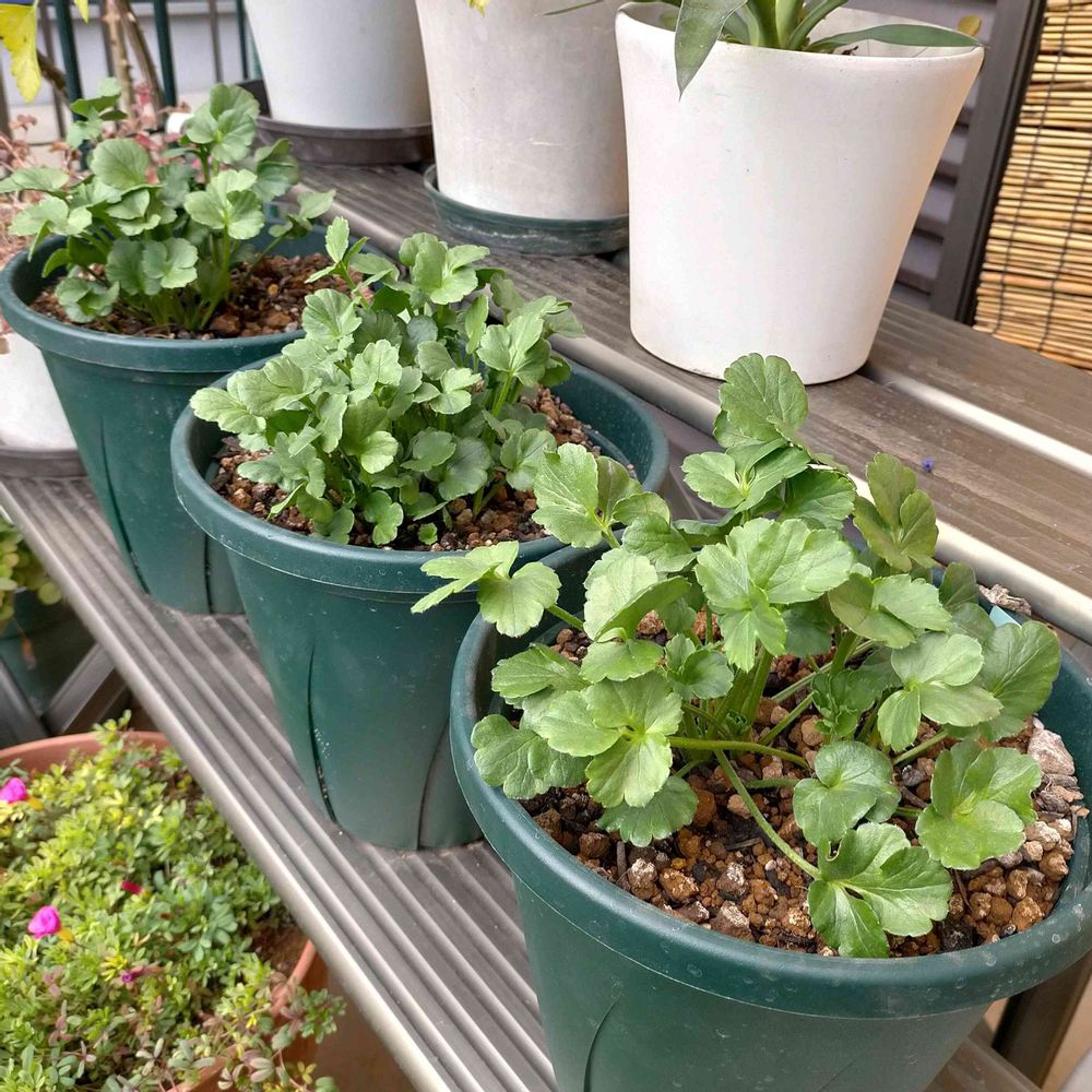 12月20日に定植時の投稿をしたラナンキュラス・ウピスは、順調に育ってます😊 並んでると可愛い三姉妹🥰💕