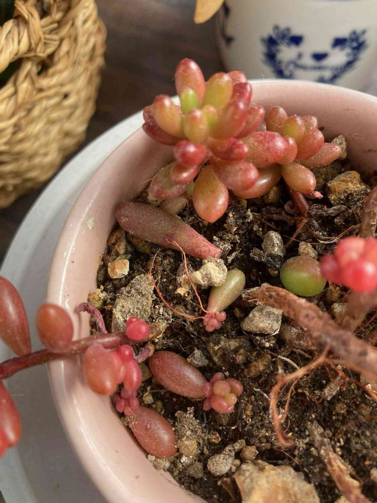 出窓に置いている多肉ちゃん、紅葉してます。ぽろんと取れたもの置いてたら、芽が出始めました。嬉しい☺️