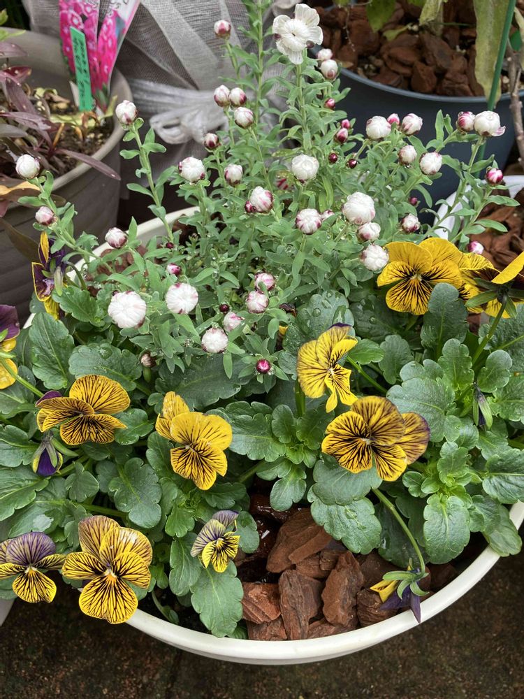 トラ柄のビオラ可愛くて2株入れました💛🖤💛🤍🤍