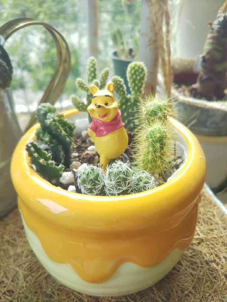 サボテンたちもプーさんの周りの僅かなスペースにしか植えられないから不安定。