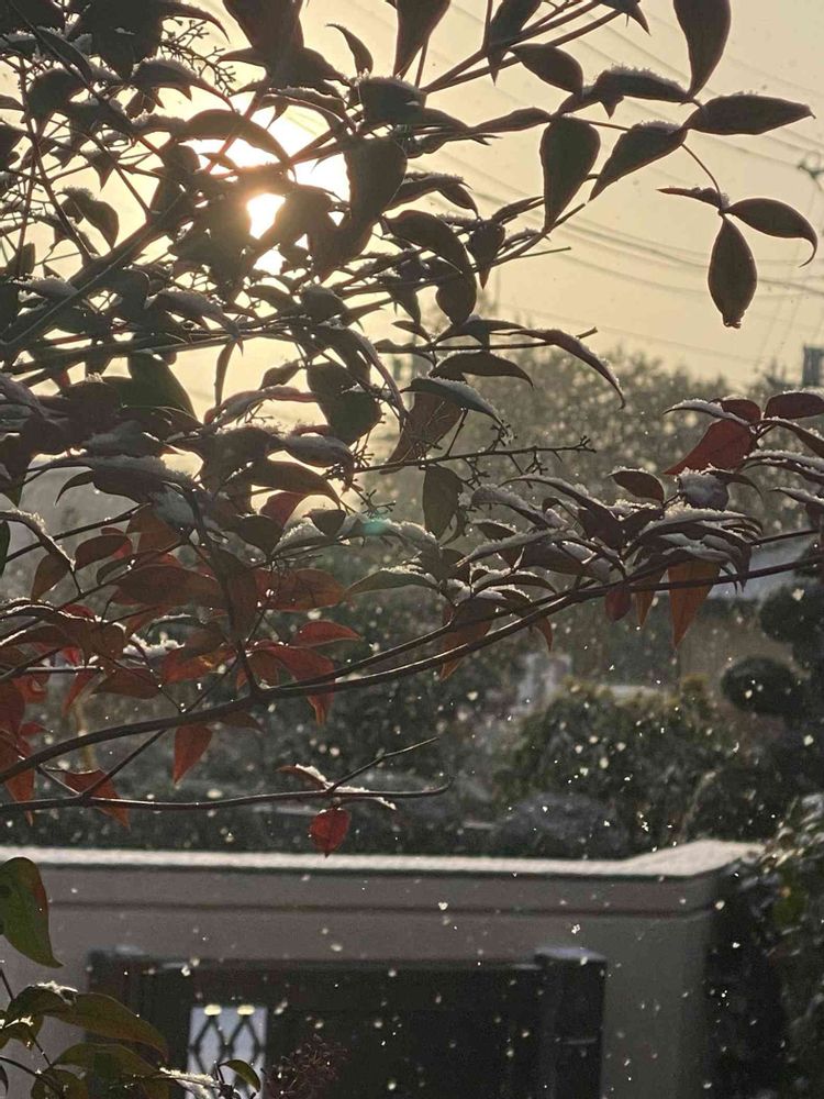 お昼の今でも🩵青空に❄️が舞っています♪積もりそうにはないですね😅