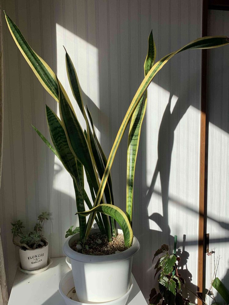 2枚目は、鉢植えしてるサンスベリア。ダメになった株は取り除いたので、スキマがあります。