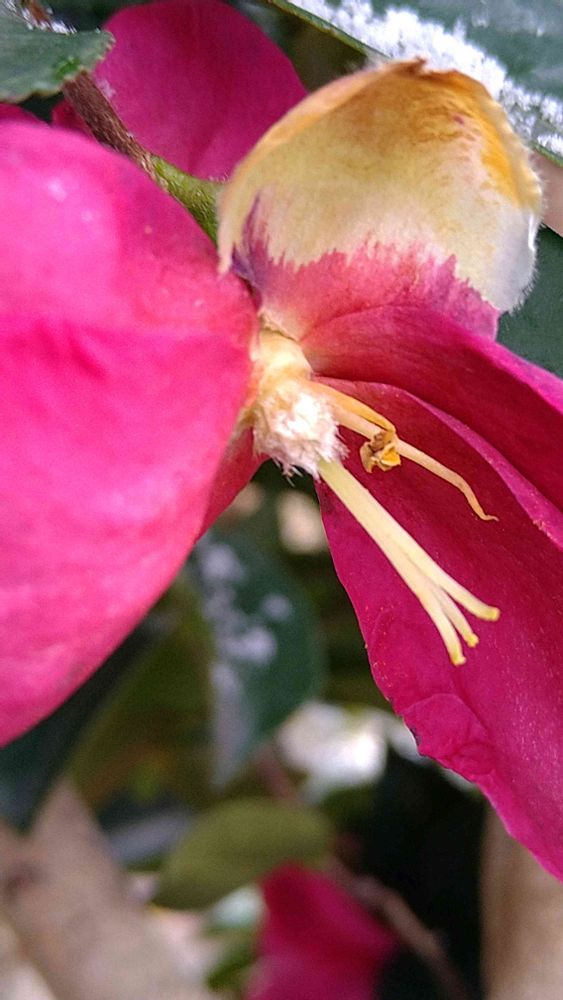 1ー2 サザンカの蕾も少なくなりソロソロ終わりそうです💮 花後には可愛い赤ちゃん見えてます👶