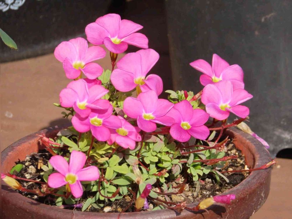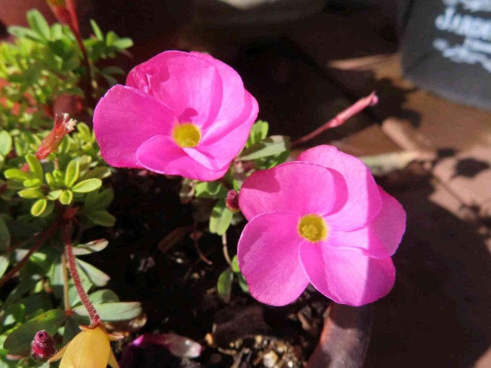 オキザリス 桃の輝きが寒さに負けず元気に咲いています。