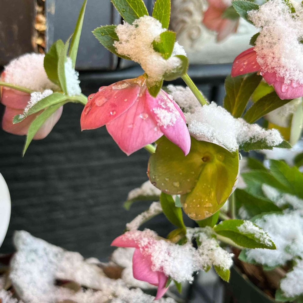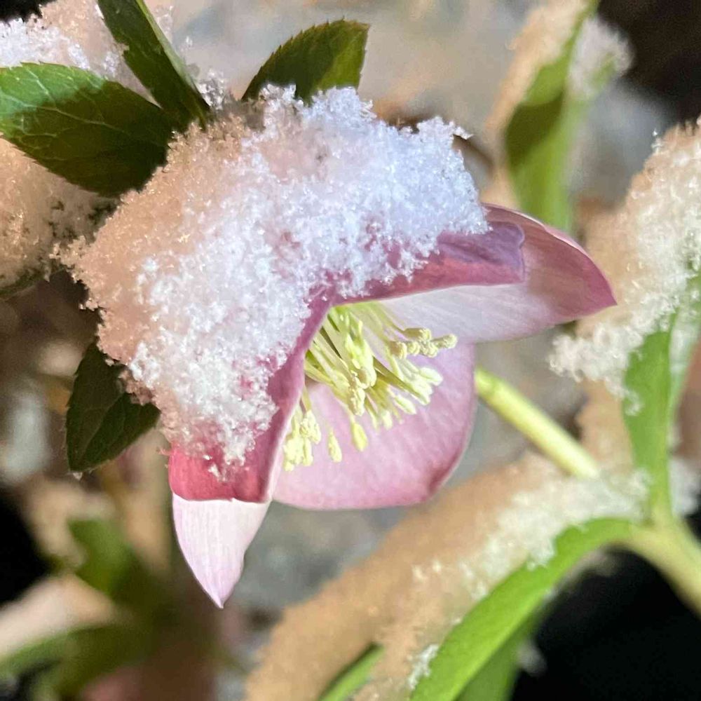 昨夜から今朝の雪の中、けなげに咲いていました。