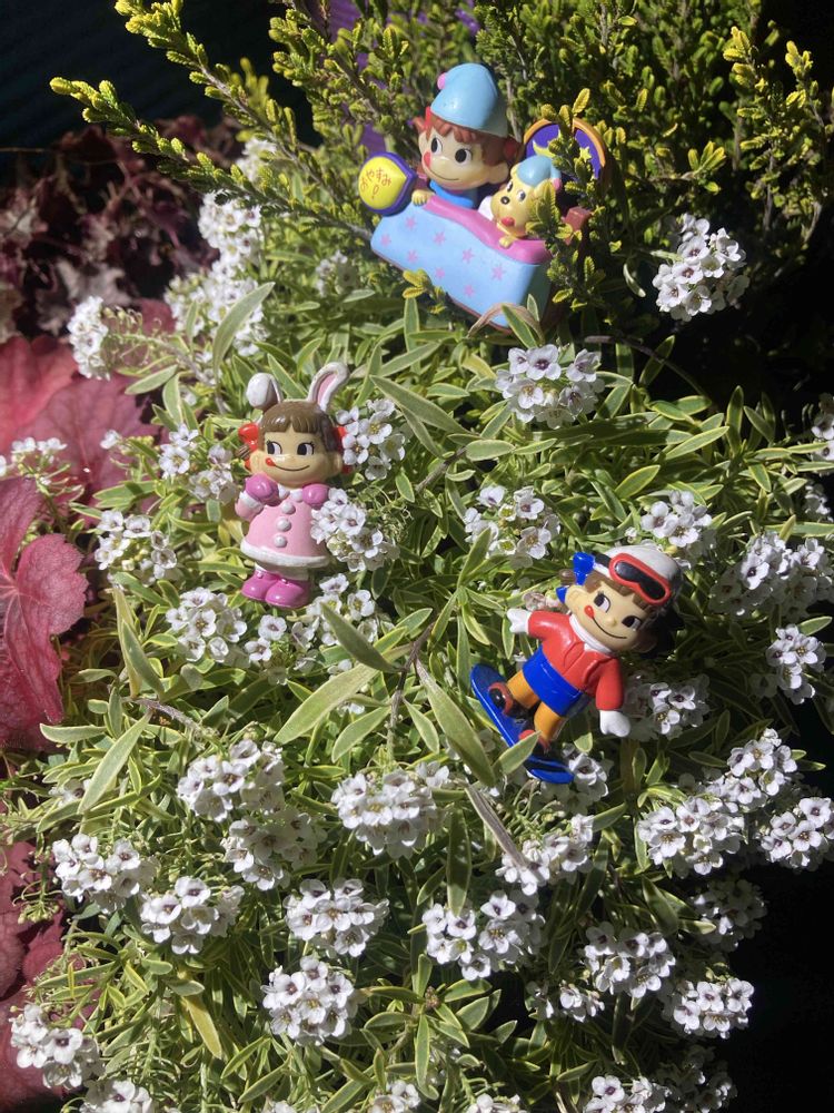 ベランダ避難中の寄植え達の中でも特に元気なスーパーアリッサム🤍