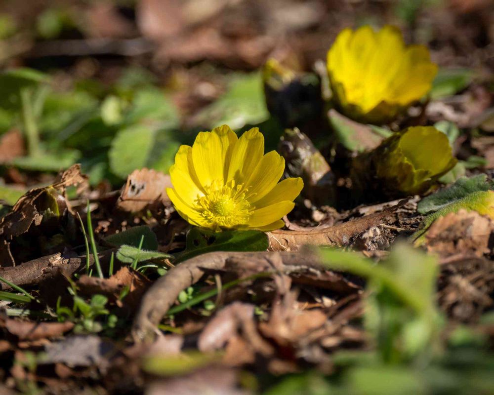 ようやくフクジュソウが咲き始めていました。2024.01.25.撮影
